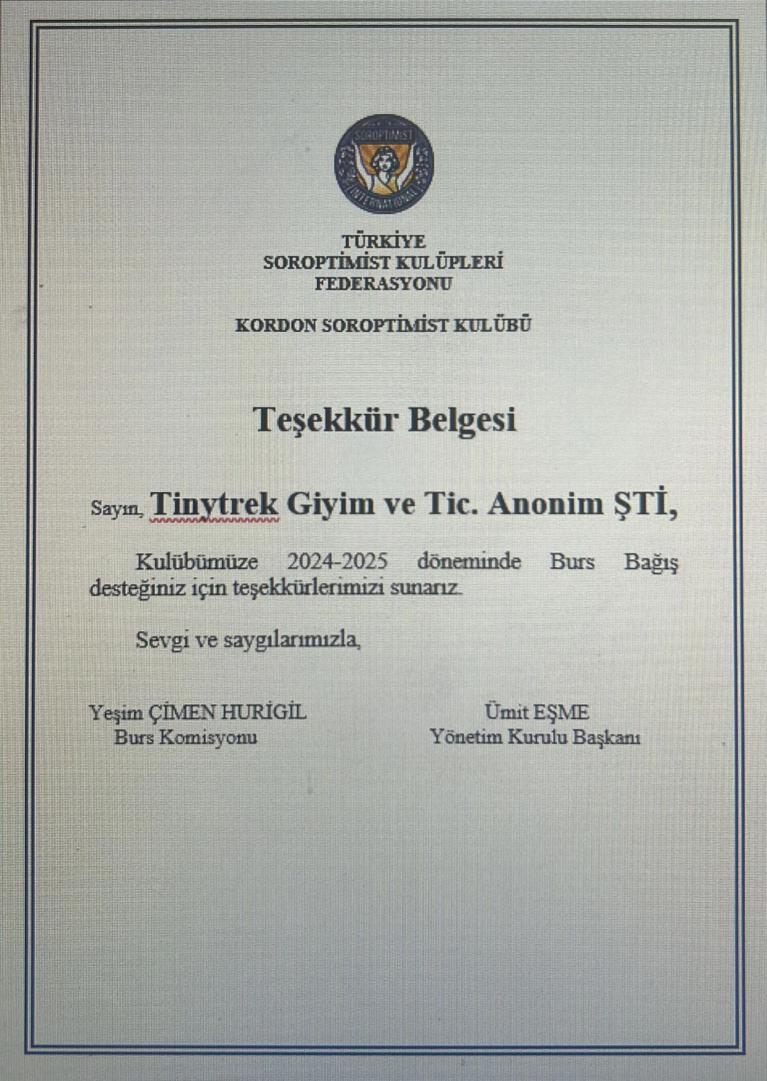 Kadın ve kız çocuklarının eğitimde eşit haklara sahip olması için faaliyet gösteren Kordon Soroptimist Kulübü’ne düzenli bağış yapıyoruz.